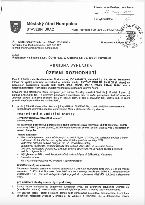 4.8.2022 VYDÁNO KOLAUDAČNÍ ROZHODNUTÍ